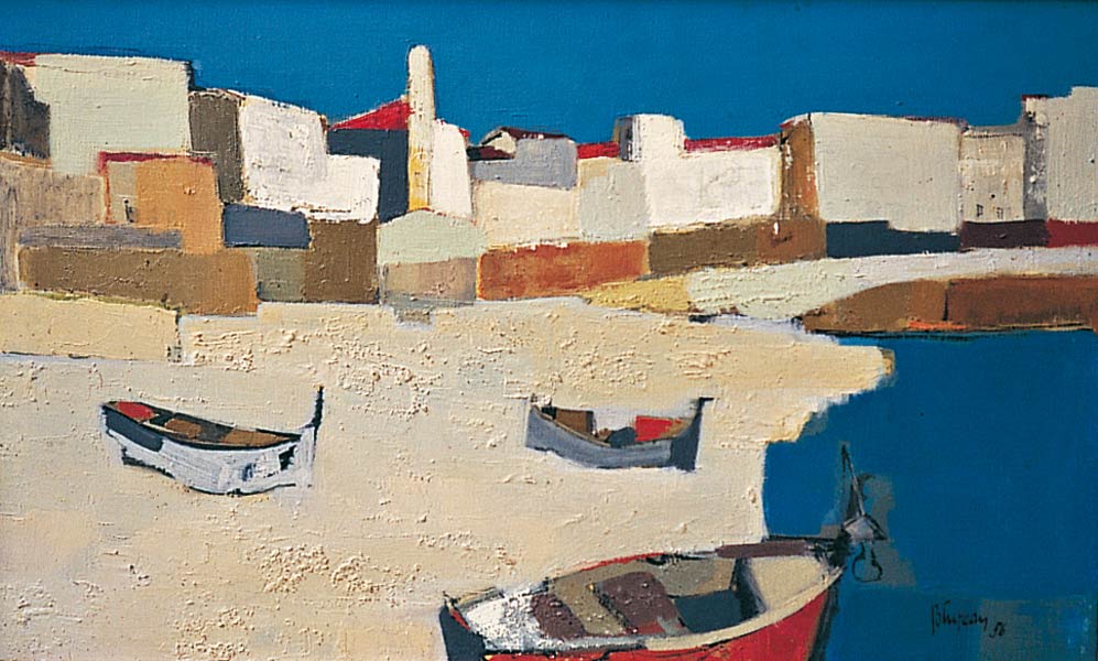 Voyage aux Baléares, le choc du soleil, des couleurs et des odeurs. La réalité de l’autre comme aventure. Une confrontation brutale à la lumière crue de Méditerranée, l’ambition est à coup sûr de donner vie à cette opposition du bleu et du blanc.