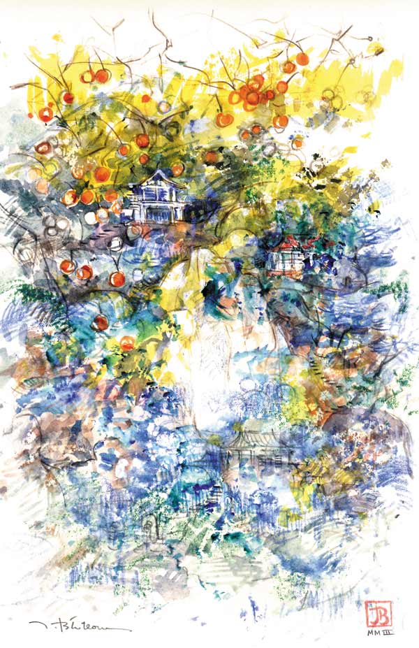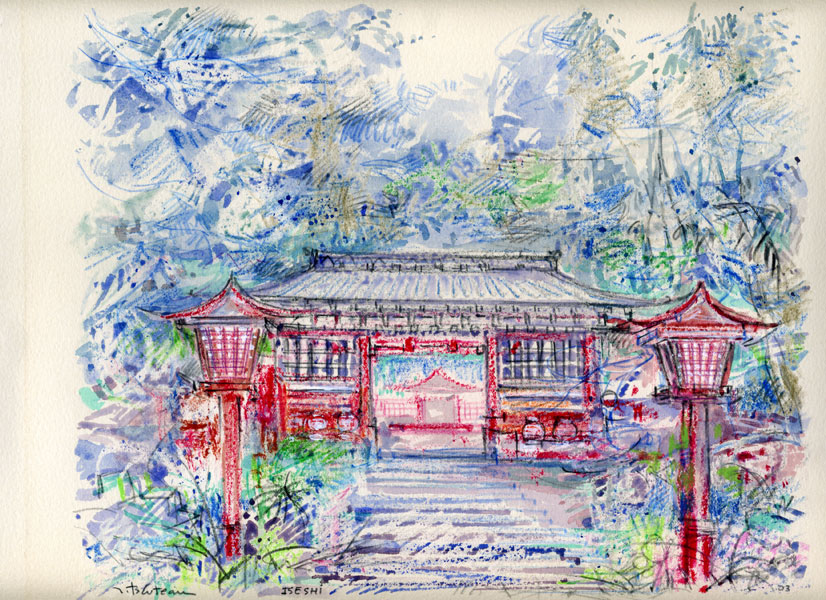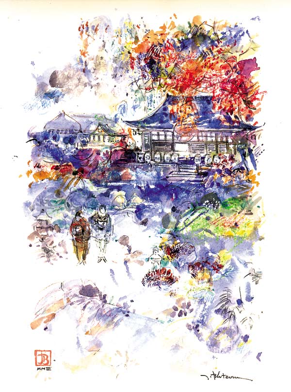 JaponCes esquisses où le paysage prend une place prépondérante sont comme un hommage aux maîtres de l’estampe. Iseshi/ 28x23 / aquarelle mixte Maison de thé/ 30x21 / aquarelle mixte Kiwis/ 30x21 / aquarelle mixte Le lac Biwa/ 24x19 / aquarelle mixte