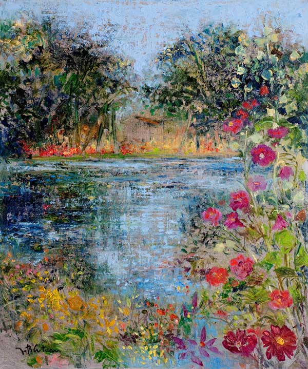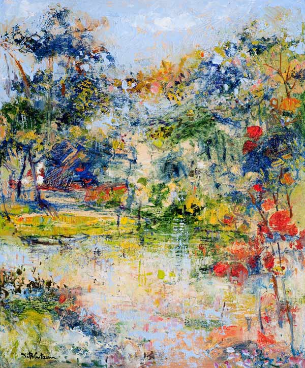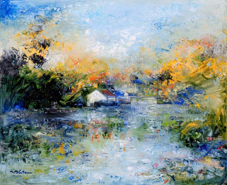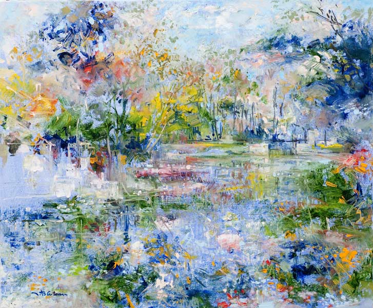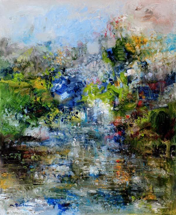 L’eau coule, fluide, légère, gazeuse, rêveuse ou inquiétante dans le mystère des nuages, dans un lacis végétal, dans cette atmosphère où il fait bon se rafraîchir.