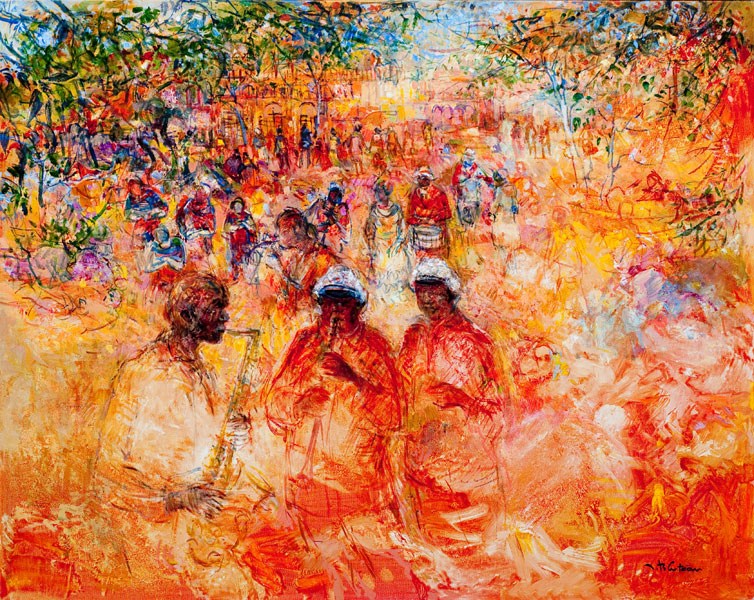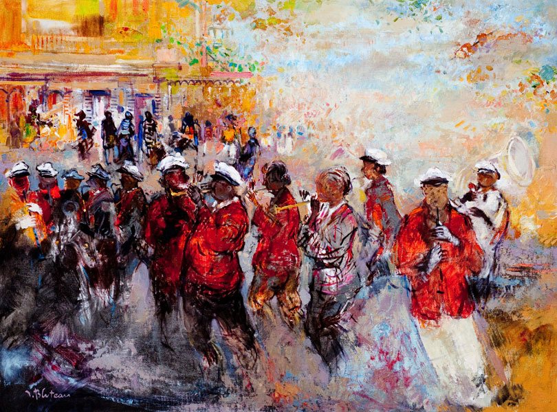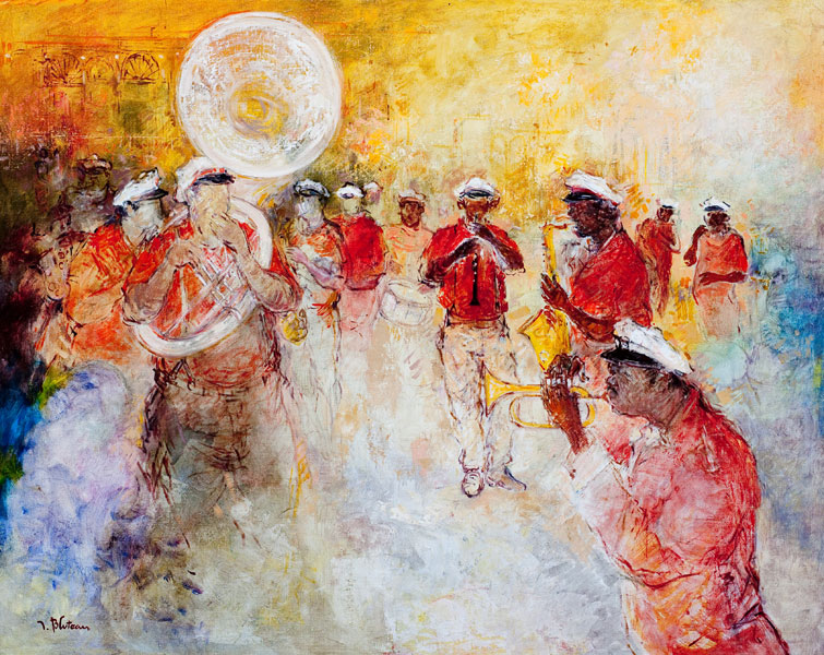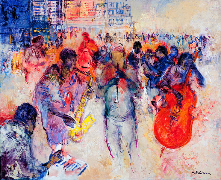 Nouvelle-Orléans Jazz de rue/ 81x50 / huile sur toile New-Orleans, Le port/ 65x54 / huile sur toile La clarinette/ 81x65 / huile sur toile Big band/ 92x73 / Huile sur toile When the saints…/ 81x50 / Huile sur toile New-Orleans, La ville